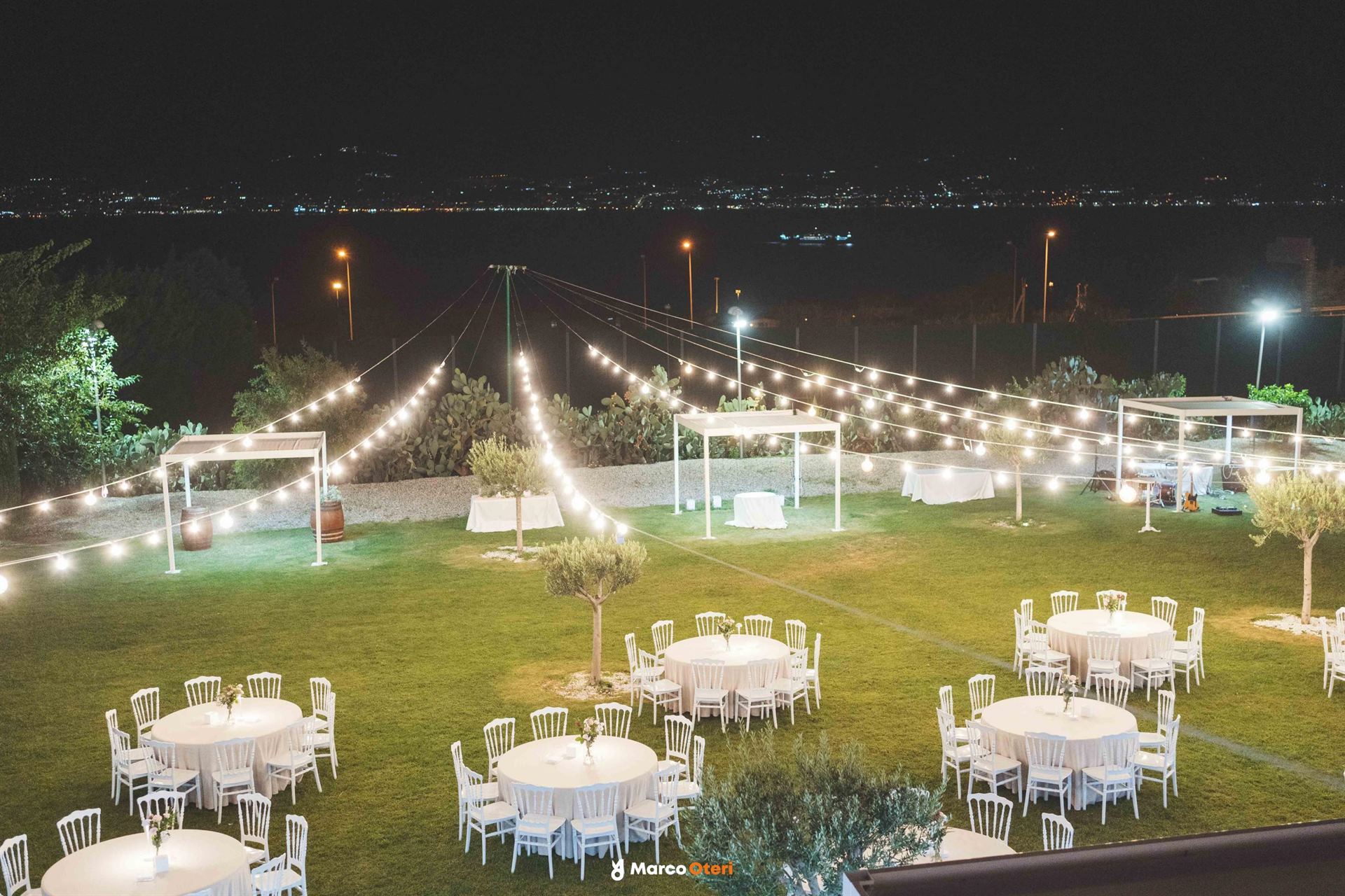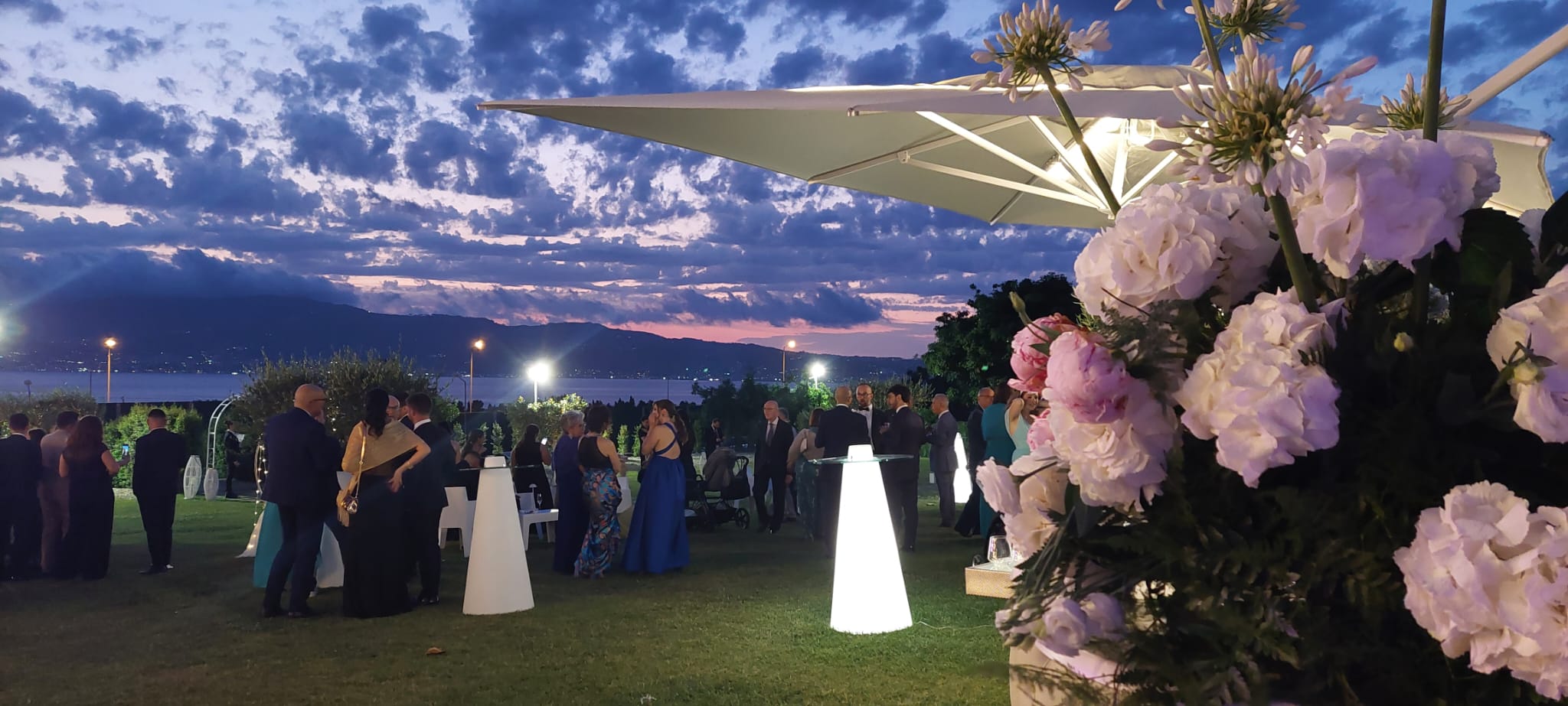In una terrazza separata dal ricevimento, scoprirai un piccolo angolo di paradiso perfetto per momenti di relax o per un elegante buffet a bordo piscina a sfioro. Ma l’incanto maggiore sarà il panorama mozzafiato sullo Stretto, illuminato dalle luci delle navi e delle case della Sicilia. La vicinanza dell’isola creerà l’illusione di poterla toccare.